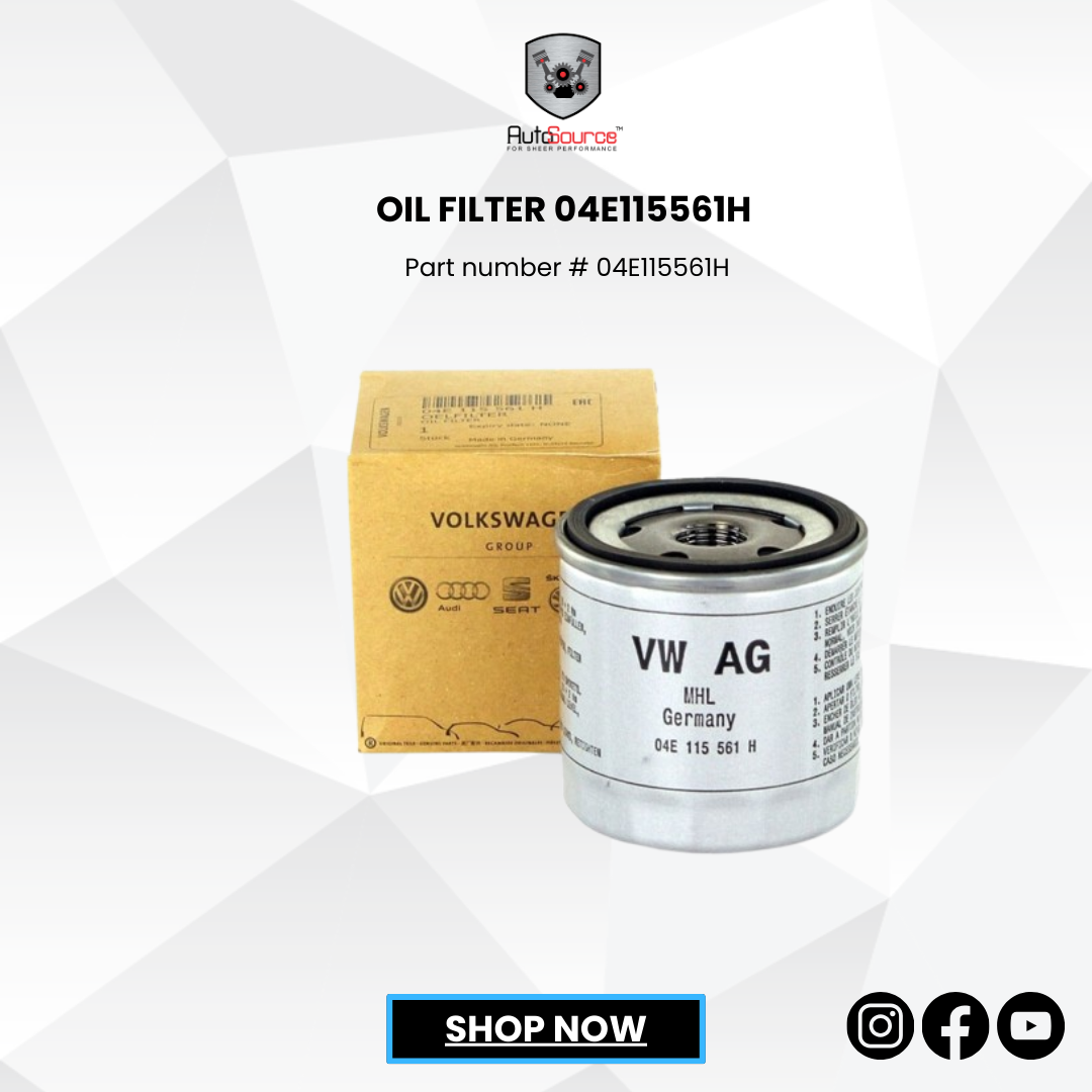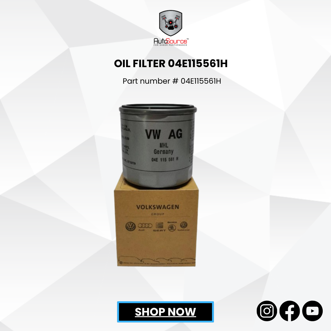 The 04E 115 561 H is a specific oil filter used primarily for several Volkswagen and Audi vehicles. It is designed to ensure proper oil filtration, helping to keep the engine oil clean by removing contaminants, metal particles, and debris. This contributes to maintaining engine performance and extending the life of the engine.